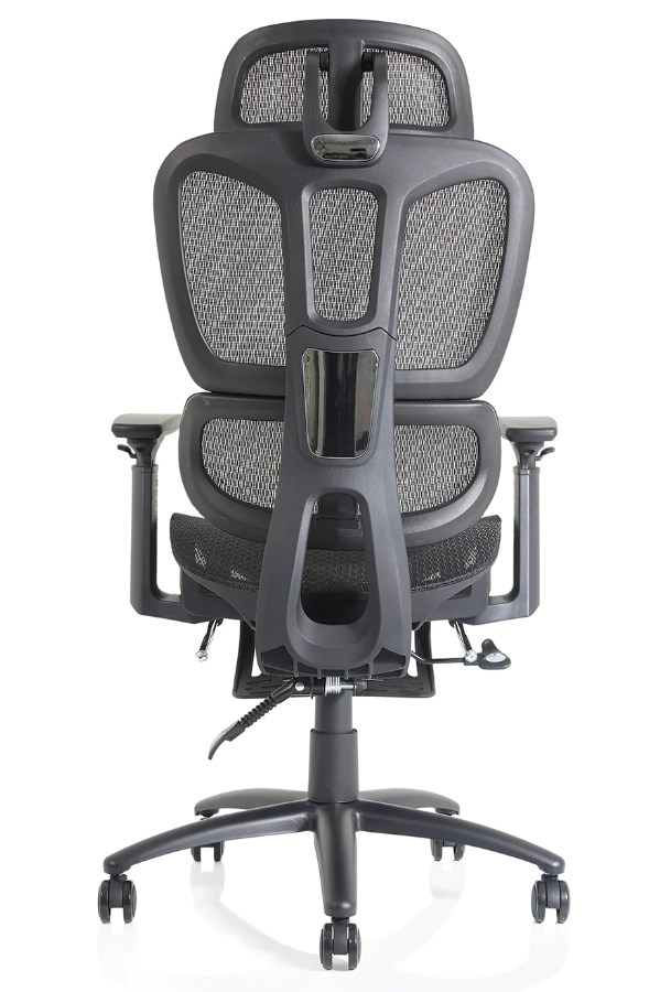 The black mesh backrest provides excellent breathability, promoting steady airflow to keep you cool during long periods of sitting. Its ergonomic split design and adaptive lumbar support deliver personalised comfort, following the natural curve of your spine to ensure consistent support all day.