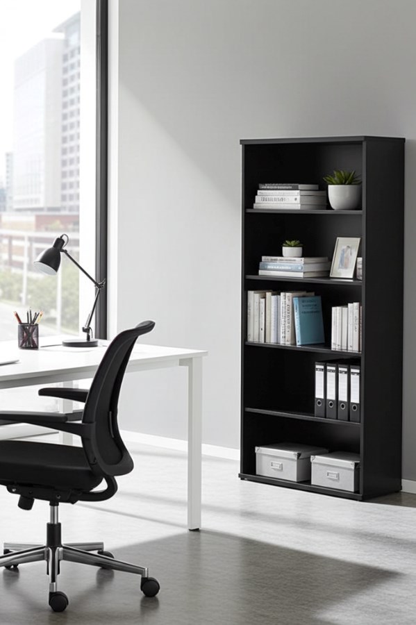 Keep Your Workspace Organised With The Optima Black 2000 Office Bookcase