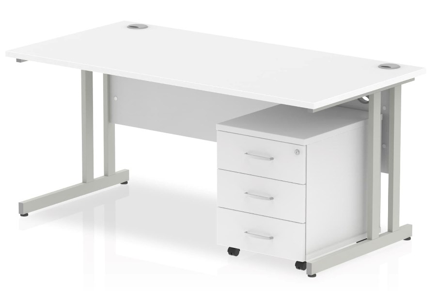The desk and the pedestal have cantilever legs that add stability and elegance to the set. The polar white Straight Rectangular cantilever Desk with Mobile Drawer Pedestal package deal is not only stylish but also practical and affordable. You can order it today and get it delivered free the next working day (excluding delivery at the weekend) if you order before 4 PM Monday - Friday. Don’t miss this opportunity to get the polar white Straight Rectangular cantilever Desk with Mobile Drawer Pedestal package deal, the perfect set for your office!