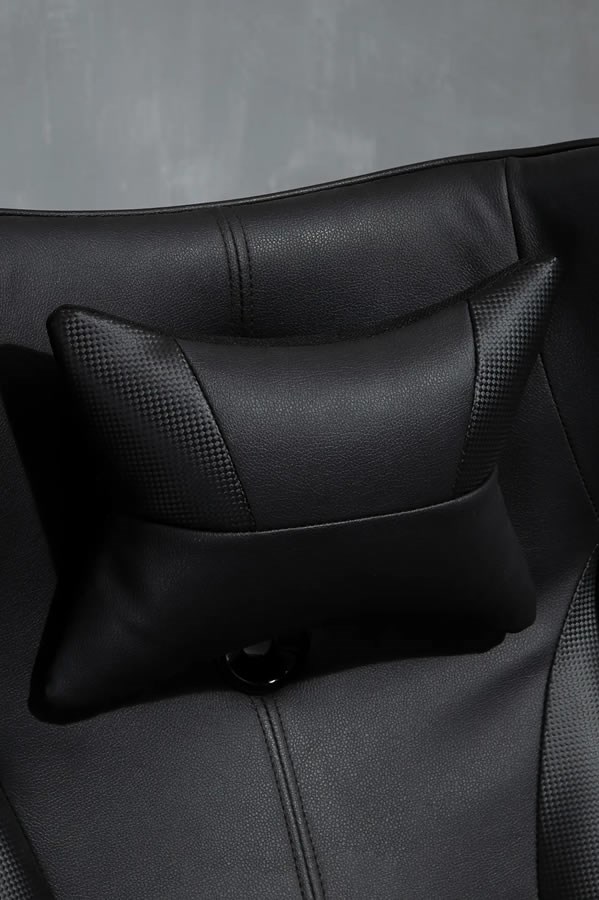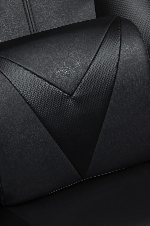 Upholstered in soft leather effect PU fabric with vibrant contrasting piping and angular accent panels, the seat and back are generously padded and sculpted for lumbar support and an integral headrest - offering the user extra ergonomic comfort.