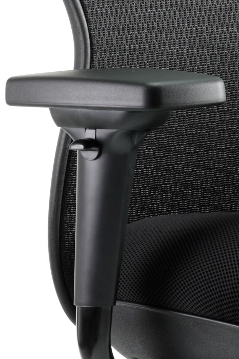 The armrests are a key feature of the chair, being fully adjustable in height, depth, angle and width. This extensive range of adjustment ensures you can find the perfect position to support your arms and shoulders, providing comfort throughout your workday.